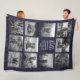 Personalized 11 Photo Collage Navy Blue Check Fleece Blanket