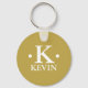 To personalize with name and initial... a stylish single-letter-monogram design on ochre yellow background with custom words 'house keys'