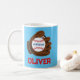 A fun personalized boy's baseball and mit mug. Featuring a brown glove with a red and white baseball (add your child's name & position). Athletic sports typography. Makes a great gift! You can change the colours/font styles.