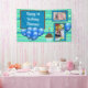 Blue Balloons tan brown and whit striped first birthday theme for a baby boy. Personalize this birthday banner by adding your baby's photo and name in the customize area.
