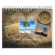 Paradise on a calendar! Add your own special touch to this stylish custom year calendar by replacing the twelve photos with your favourites! This two page photo calendar template includes all twelve of your favourite travel photos on the back for easy reference; all are framed in antique ivory and are featured over a vintage travel map. Easily personalize the calendar title (which reads: "Live more, worry less" ), name and year using the provided templates. An artistic tropical palm tree with coconuts adorns each monthly page.