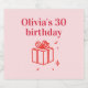 Elevate your birthday celebration with this personalized 30th birthday wine label. Designed in a blush pink background with bold red text and a fun gift box illustration, this modern label is perfect for champagne, prosecco, or wine bottles. A stylish way to tie your drinks into the party theme and impress your guests.