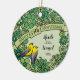 Here is a whimsical intricate floral themed 35th wedding anniversary ornament that you can personalize for a special bride and groom! Two prothonotary warblers perch on a decorative floral pattern border made of flowers and artistic swirls in shades of green. The birds sit beside a space for two names and a wedding year in script text.
