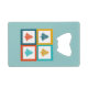 A graphic illustration of 4 christmas trees, tiled in a poster style. Retro colours - yellow. orange, blue and green. Cute and festive. Personalize with a name.