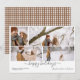 Season's Greetings Personalized four Photo Christmas Card from Ricaso - designed with a scroll typography text with photographs template to the front and a brown and white check pattern to the back