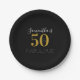 Personalized 50 and fabulous Black Gold Birthday Paper Plate