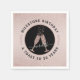 On a delicate blush pink background, our feminine 50th Birthday party napkins feature girly blush glitter ombre overlays on top and bottom for added sparkle. Inside a black and rose gold circle logo, bubbling champagne glasses clink together in a toast to the birthday honoree. Text circled around the logo reads "Milestone Birthday" and "A Toast to 50 Years." You can easily revise the honoree's name and birthday year number on the personalization template. PLEASE NOTE: Make sure to retain the code boxes to keep the swashes intact.