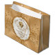 Gorgeous Personalized, 50th Wedding Anniversary Gift Bags in various sizes. Click "PERSONALIZE" and Type in Couple's NAMES and Anniversary Date or YOUR TEXT or Delete. Beautiful Heart Shaped Diamond Design set off with Golden Swirls and Happy 50th Anniversary Message. Golden Wedding Anniversary Bags can match our golden anniversary presents. CALL Designer Linda: 239-949-9090 EST 10AM to 5PM to design your matching 50th anniversary present or 50th anniversary wrapping paper, gold anniversary party supplies and more. I can make design, year, occasion, colour, gemstone symbol and product CHANGES.