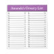 Stay organized with this purple & white grocery list notepad with 32 grocery entries in 2 columns, each with a coupon option, and a check mark box for completing your food shopping.