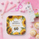 Elevate your 60th birthday celebration with our Personalized Sunflower Paper Plates. Designed to commemorate this special milestone, these plates are adorned with stunning watercolor sunflower illustrations along the edges. The middle of the plate features a customizable text template, allowing you to add your own message and name. Adding to the charm is an illustration of the number 60, tastefully adorned with sunflowers. Embrace the elegance of sunflowers and personalized details as you create cherished memories on your special day.a