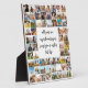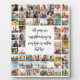 Create your own personalized photo plaque featuring 64 of your pictures alongside custom quote, song lyric or other text in elegant script calligraphy.