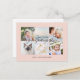 Personalized 6 family photos golden hour blush pink cute chic feminine Universal Greetings Postcards featuring a stylish photo collage with 6 customized images, your greetings message in elegant handwritten script font, your name, date, year, message on the back in a modern and simple sans serif font.