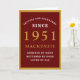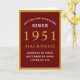 Personalized 70th Birthday 1951 Red Gold Chic Card