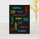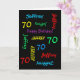 What a wonderful, personalized greeting card for a 70th birthday or any other occasion. On the cover, Name and Age repeats in different fonts and colours on a black background. Easy to personalize - just CHANGE NAME, AGE, and OCCASION in ONE PLACE. Supports name up to 9 characters. A colourful and fun Birthday CARD. Kids, teenagers, and adults will love it! Also easy to modify inside text, if desired. All Rights Reserved © 2014 Marcia Socolik.