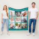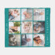 Personalized 9 Photo Collage Family Teal Blue Fleece Blanket