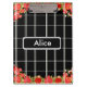 This beautiful floral personalized clip board is a standard A4 size. This black clipboard features one of my hand drawings of roses on a black background.
