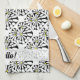 Customizable kitchen towel, featuring a modern abstract black and white pattern. The text can be customized.
