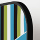 You'll stand out on the pickleball court with this Monogrammed pickleball paddle that has a turquoise, green, and black abstract flowers on a white background below a blue and white band across the centre that has customizable wording on both sides. On top of the band is a circle shape in green and white that is trimmed in black and has a monogram in blue and is personalized with your name in black. Above the blue band is a pattern of stripes in the same blue, green, black and white colours. Email niteowlstudio@gmail.com with any request for changes.
