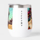 Personalized water bottle. Unique ai art depicting a beautiful modern woman with colourful hair and sunglasses in a bikini at the beach with a reflection in them. Pop art comic style fractured art.