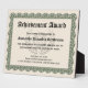 Beautiful achievement award plaque makes an excellent corporate gift, or trophy to reward a student, employee of the month, year, customer service, sales milestone or other person for a job well done. Pretty rosette vintage woodcut art border with classic style and beige certificate background with a laurel leaf emblem in the background. Old english text customized with your name, school, business organization and other text.
