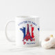 This is a personalized ADDICTED TO PARIS Coffee Mug, with the map outline of France in the TRICOLORE flag of FRANCE. Curved at the top, the text reads ADDICTED TO PARIS. Taking pride of place is a graphic of the Eiffel Tower (Tour Eiffel) and there are groups of red hearts. The curved heading on this patriotic Paris Lover Coffee Mug is CUSTOMIZABLE, so you can replace with your own preferred greeting or delete. There is also a CUSTOMIZABLE NAME in the bottom right hand corner. The design is repeated on the back, and in the middle there is a CUSTOMIZABLE MONOGRAM in a map outline of France. Matching gifts are available so you can create awesome gift sets for your favourite Paris lover.