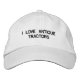 Here is an adjustable hat with the words I LOVE ANTIQUE TRACTORS on it.