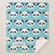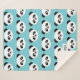 Personalized Adorable Panda Bear Pattern Blue Kids Sherap Fuzzy Blanket. Three sizes. Pretty blue background with black and white panda bear faces pattern. Personalize with name in bottom corner. Or remove the name tag and name if you do not wish to have personalization. www.SamAnnDesigns.com