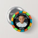 Birthday Boy button. Happy Birthday to you, add name, age and photo to this personalized birthday button. Retro pop art black, orange, blue and green background.