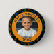 Birthday boy button. Happy Birthday to you, add name, age and photo to this personalized birthday button. Blue, black orange, lime green and white background.