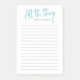 These customizable notepads features the text "all the things" in a handwritten script with a spot to enter your name below. Easily customize the colour of the name by selecting customize further!
