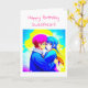 Happy Birthday card for a girlfriend or boyfriend, husband or wife who love anime! Cute anime couple cuddling in pink, blue and yellow ai art.