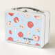 Retro metal teacher's lunch box with the front and back done in a cute blue polka dot and apple pattern.  Personalize the name, on the front, for your favourite teacher.