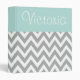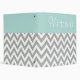 A grey and white chevron pattern with an aqua accent decorates this binder. Personalize this modern binder by changing the name. Use this empty binder for school, class, college, home, office, as a scrapbook, teacher's binder, lesson plan binder, student binder, recipe binder, etc....The design is from original art.