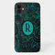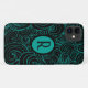Show your style with this dramatic personalized aqua teal and black phone case. Artistic swirls surround an oval featuring the owner's initial.