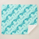 Bold stylized dragonfly named repeat patterned blanket in dark teal, aqua and white. Ideal for making a really personal sewing project for girls who love dragonflies or inked art. Customize with your own choice of name currently reads Linda. The background colour can also be changed if required currently aqua. Original inked art and design by Sarah Trett www.sarahtrett.com for www.mylittleeden.com
