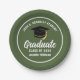 This army green custom graduation party paper plate features classy typography of your military academy, high school, or college name for the class of 2025. Customize with your graduating year under the chic white handwritten script and black grad cap for great personalized graduate decor.