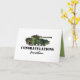 A simple military passing out greeting card featuring a camouflage army tank, the word "congratulations", and the name of the soldier.