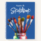 Sketchbook notebook displays a colourful watercolor illustration of an artist’s paintbrushes in a bottle. A fun design on this customizable sketchbook. It would make a wonderful personalized gift as the name is editable. “Sketchbook” is written in an elegant script typography on a cool blue background.