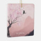This "at peace" holiday Christmas tree ornament features a spring Japanese style mountain landscape with a pink sunrise, a beautiful pink flowering tree. There is a crane taking off from a tree branch flying across the face of the moon. It can be personalized with a name, year or any text that you wish to add. ^