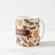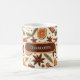 Cozy up with this personalized autumn mug, featuring a warm fall pattern of oranges, pine sprigs, cinnamon sticks, and star anise. The elegant brown nameplate allows you to add your own name or gift recipient’s for a unique seasonal touch. Perfect for pumpkin spice lovers, fall mornings, or Thanksgiving gifts. Ideal for coffee, tea, or hot cocoa!