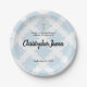 Personalized Baby boy blue Baptism & gold cross Paper Plate