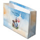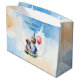 A sweet customizable 1st birthday party gift bag for a boy's birthday party. This has a sweet theme of a little baby boy holding a balloon sitting next to his puppy dog. It is done with a whimsical watercolor style by ai. So, if your little boy's best friend is his puppy dog, this theme will be perfect for you.