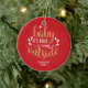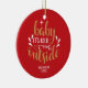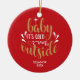 Personalized Christmas ceramic ornament featuring the phrase "Baby It's cold outside", set in an elegant gold and white script text on a red background. You can personalise with a loved one's name and the year. A perfect gift as a Christmas decoration!