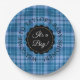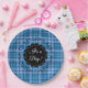 Personalize these cute baby boy, "its a boy" baby shower small cake plates, with blue plaid chequered stripes and black label on the inside that says, "Its a boy."