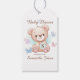 Celebrate the mom-to-be with a cute bear and butterflies personalized baby shower gift tag. The front features the special event name along with the name of the mom-to-be as well as her monogram. The back is blue. Use the template to personalize.