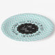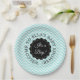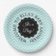 Personalize these cute baby boy, "its a boy" baby shower plates, with teal aqua blue chevron stripes and black label on the inside that says, "Its a boy."