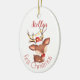Personalized baby's first Christmas ornament with the baby's name and a cute baby deer in a Santa hat. The name and writing can be changed as well as the colour of the writing, this will make a beautiful keepsake as well as look stylish on the Christmas tree.