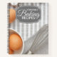 Personalized Baking Whisk Family Recipe Notebook. This design features grey stripe linen with eggs and whisk.