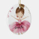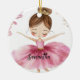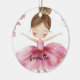 Personalized Ballerina Ornament with beautiful girl dancing in her tutu and flowers in her hair. Faux gold glitter tutu and script lettering for her name personalization.