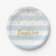 Personalized Baptism BOY Blue Gold Stripes Paper Plate